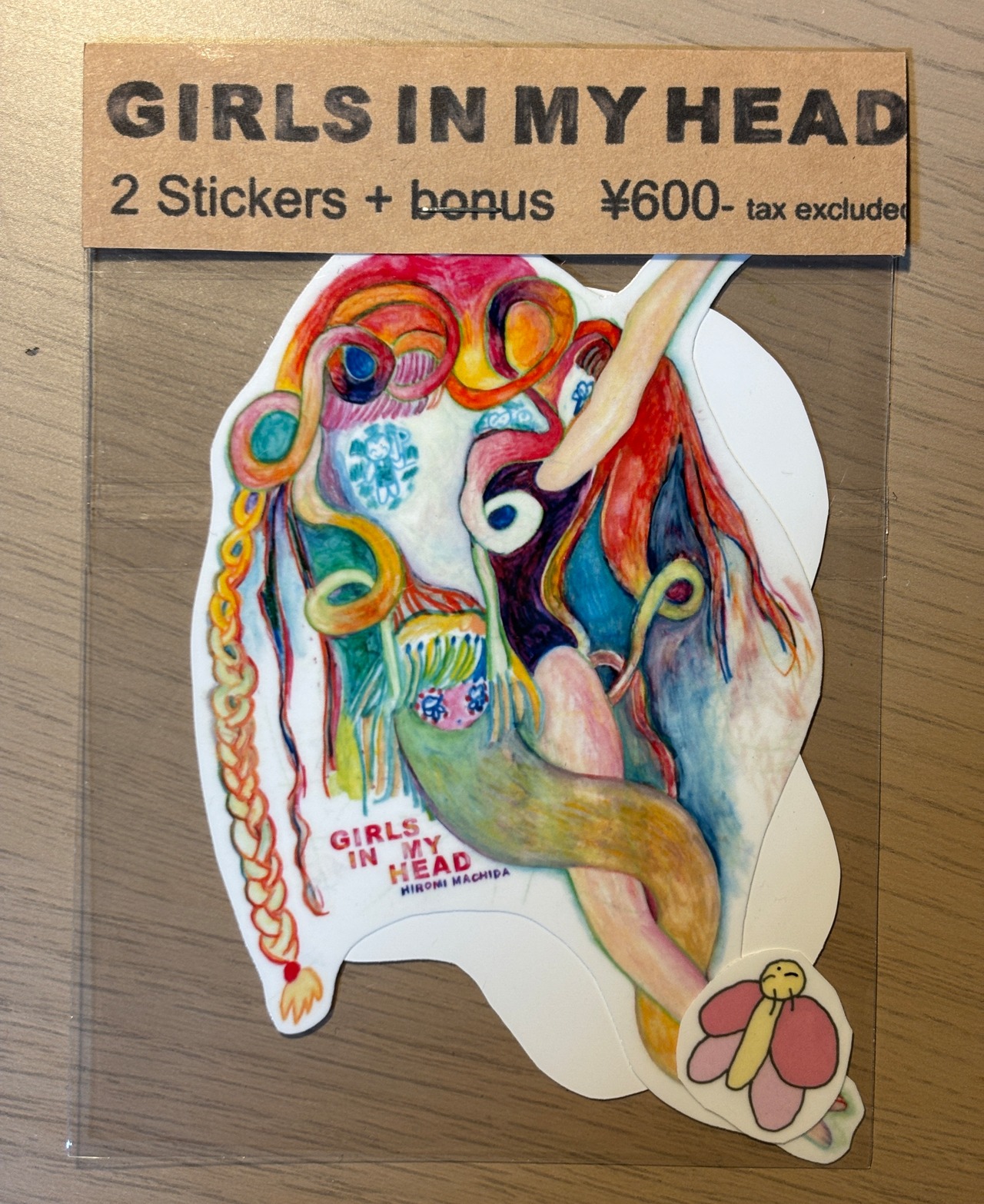 防水 じょうぶなステッカーセットです。 ZINE「GIRLS IN MY HEAD」の表紙の絵のステッカーセット