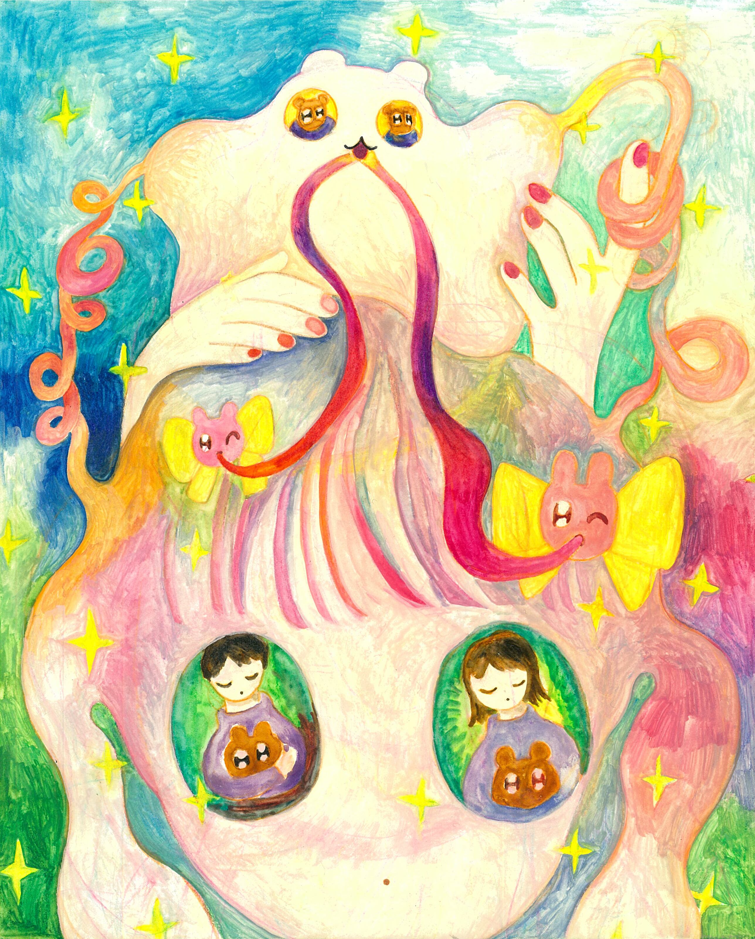 木製パネル、紙、水彩色鉛筆、フィキサチーフ